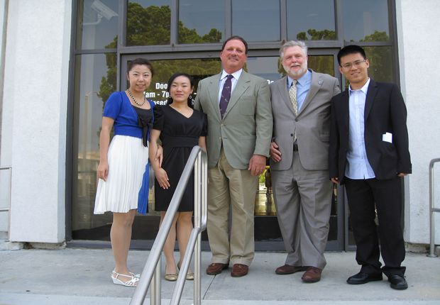 三位教师与富乐敦分校美国文化主讲教师合影留念