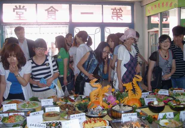6月8日中午,后勤保障部在大学生创业协会的协助下,以“丰富校园文化,欢送毕业生离校”为主题,在1号食堂举办首届校园美食节。