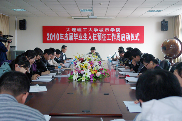 2010年应届毕业生入伍预征工作启动仪式在八楼会议室举行。副院长杨斌、院长助理兼学生指导部主任李宪起以及伟德