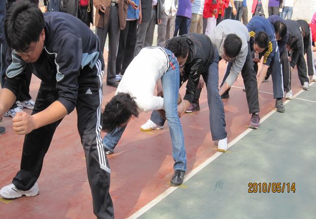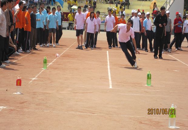 伟德 教师正在参加折线推瓶比赛