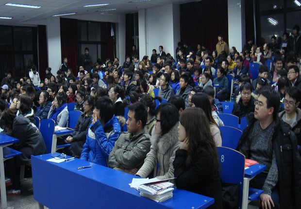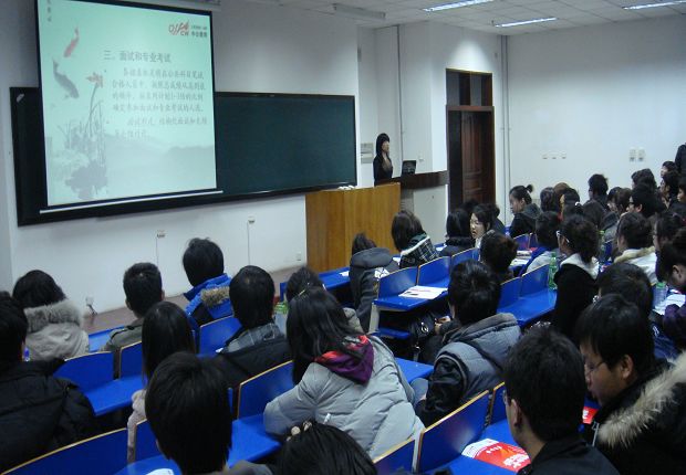 230名学生在教学楼1212阶梯教室聆听了中公网公务员考试讲座,备战2010年公务员考试。