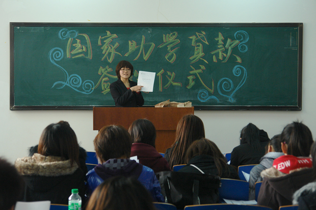 同学们在认真履行贷款手续