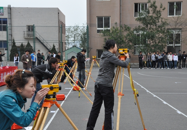 随后,参赛队员进行了个人水准测量和电子经纬仪角度测量。经过几天的激烈角逐,杜剑、刘尧臣、姚晓楠、韩丹四位同学获得团体赛一等奖,程跃海同学获得个人赛一等奖。