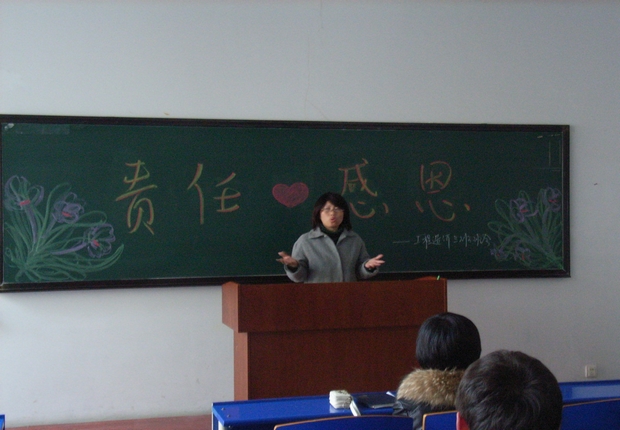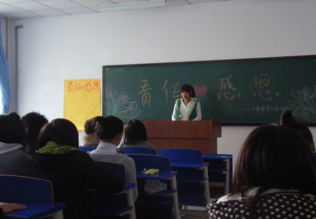 工程造价专业0903班召开的“责任•感恩”主题教育班会正在这里举行,这是这个班级召开的第四次主题班会。他们刚刚从媒体的报道中得知,班级同学夏银燕和刘朋自愿到大连市血液中心献血,夏银燕的血浆还成功救治了一名重症患儿。