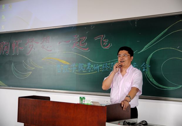 院长许良、学生办公室主任朱金玉等老师参加了会议。五名成功考取研究生的05级学子与一百多名正准备考研的学弟、学妹们分享了他们的考研心得与体会。