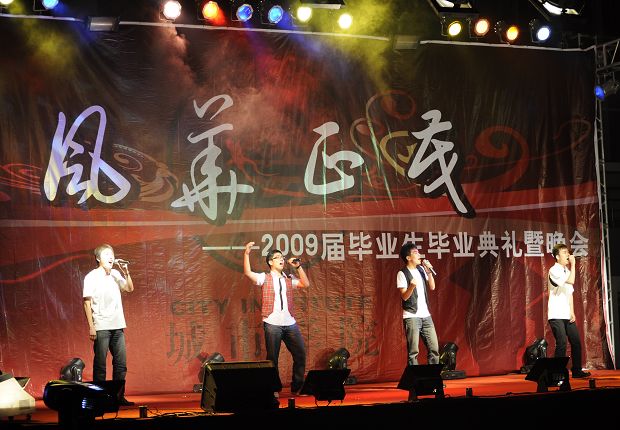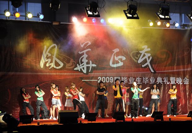在体育馆隆重举行《风华正茂--2009届毕业生文艺晚会》。院长匡国柱、院党委书记郭玉铸、副院长杨斌、王铁成等伟德