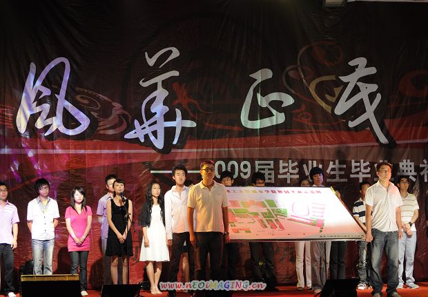 毕业生代表依次上台展示自己为母校创作的珍贵礼品更使晚会的热烈气氛达到了顶点。