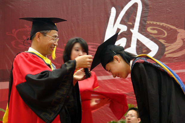 学士学位的60名学生代表颁发学位证书,毕业典礼的气氛达到了高潮。