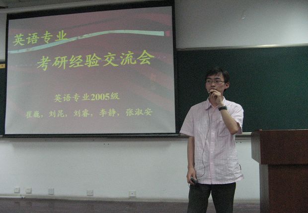 宁强老师首先对研究生考试的报考流程进行了介绍。接下来,五位同学结合自身成功的“实战”经历,介绍了他们确定考研目标、前期准备、复习策略、心态调整、复试技巧、注意事项等内容。
