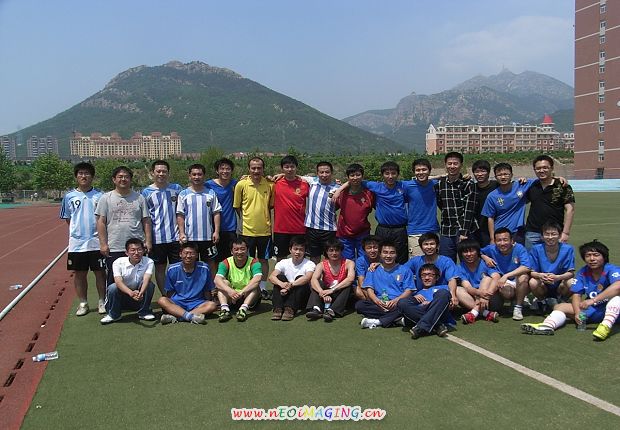 开赛前,全体队员合影留念。比赛一开始,毕业生队很快进入状态,他们凭借较好体力和速度上的优势,通过积极拼抢,不断给教工队施加压力,林之声、林详哲几名同学先后进球,取得了明显的领先优势。但是,教师队并不示弱,他们凭借丰富的比赛经验,调整比赛思路,打出默契配合,有效地控制了比赛节奏。结果冯志刚老师独中两元,把比赛推向了高潮,整场比赛在友好的气氛中圆满结束。