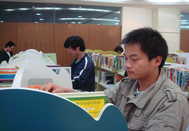 义工站的引导下,计算机专业的15名同学迎着濛濛细雨,来到大连开发区图书馆,当了2个小时的义工。
