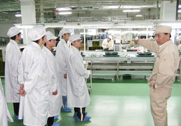 组织2006级全体学生到大连大显电子有限公司参观,这是该院就业指导课的一项实践内容。此次教学实践活动得到了企业的大力支持,电子与信息工程专业委员会委员、大连大显电子有限公司总经理助理黄文彪先生亲自带领同学们参观并为大家讲解。