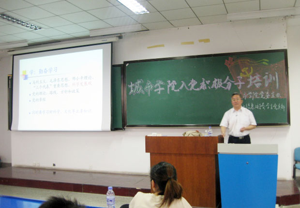 党委主办,电子信息工程专业学生党支部承办的2009年第一期入党积极分子培训班在教学楼1308教室举行,来自11个院系的200余名入党积极分子参加了此次培训。