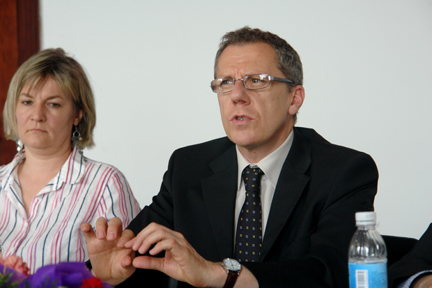 布鲁内尔大学语言培训中心主任斯蒂文逊女士介绍了该大学语言培训中心的运作方式。
