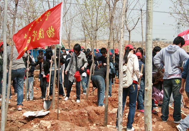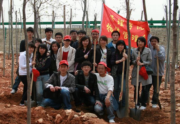 阳春四月,春意盎然,充满着活力,也预示着希望。4月18日上午,物流管理系学生党支部20多名学生党员和入党积极分子在支部书记范义方的带领下,参加了大连开发区管委会组织的大庄高速公路义务植树活动,将学习实践科学发展观活动落实到实际工作中去。