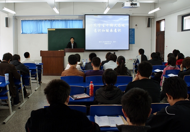 4月19日,软件工程系在1301教室举行第三期学生干部培训班,对07级学生干部进行培训,软件工程系全体辅导教师承担了本次培训任务。
