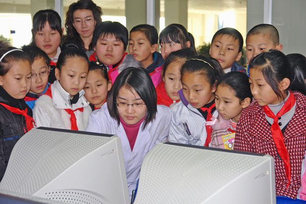 园宏伟壮丽的同时,也对大学生活充满了好奇和向往。志愿者们也尽心尽责,耐心地回答同学们提出的问题。在参观图书馆时,孩子们还在图书管理人员的帮助下,查找自己喜爱的书籍。