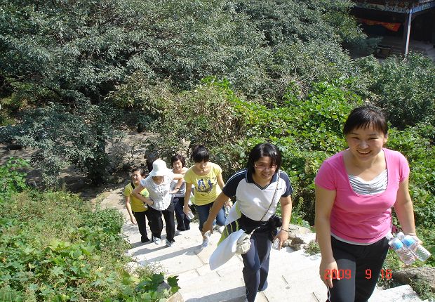 (虽然山势陡峭但教师们依然兴致勃勃)