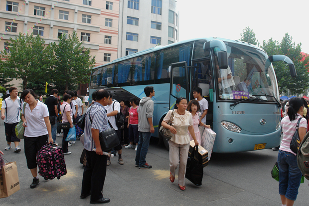 安排的19辆接送新生及家长的豪华大巴车不断地穿梭在伟德