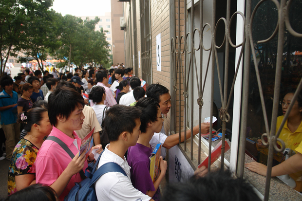 (实验楼前的新生缴费查询处是最热闹的地方)
