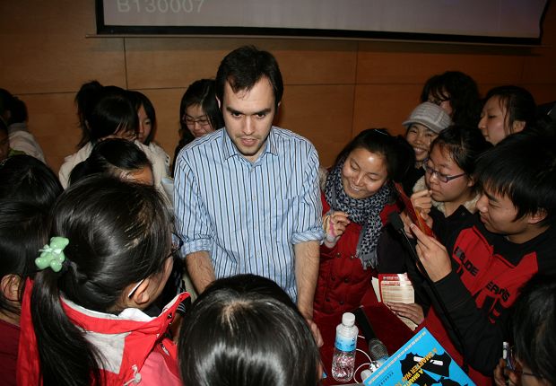 John Gordon先生从交流(Communication)、朗读(Read aloud)、模仿(Imitation)三个方面向大家讲述了学习口语的重要性和有效方法,其间他妙趣横生的语言和通俗的例子令现场观众不时大笑,演讲也多次被观众的掌声打断。随后John Gordon还回答了现场观众的提问。