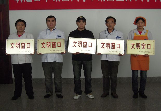 会上,后勤保障部主任唐万海宣读了2008年食堂文明窗口名单并予以表彰,它们分别是:1号食堂5号档口、3号档口;2号食堂地上一层5-6号档口、11号档口;3号食堂22号档口。