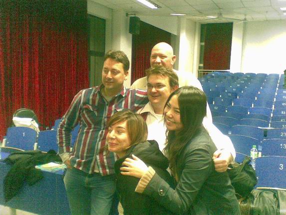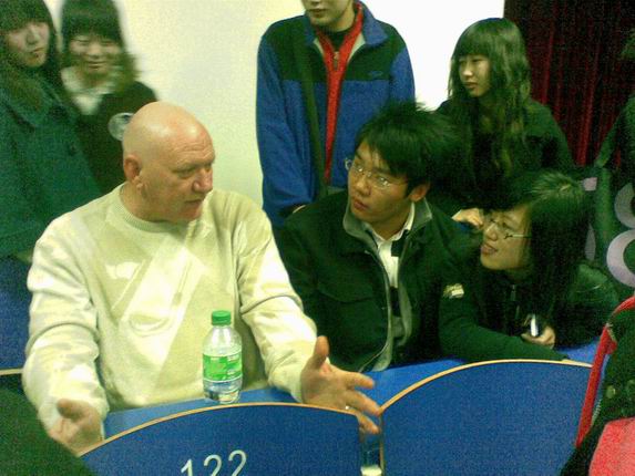 本次活动邀请英语系宁强老师、张印老师、美国外教Hahn、日本外教Noriko以及他们的朋友——澳大利亚人Paul,美国人Jim,意大利人Sara,从而使本次活动大大增加了“国际”色彩。晚上六点整,当嘉宾们依次走进会场时,全场爆发出热烈的掌声。活动期间,同学们自由开心地与外教和老师们热情交流,倾心沟通,不知不觉间,原本预期一个小时的活动持续了两个小时。