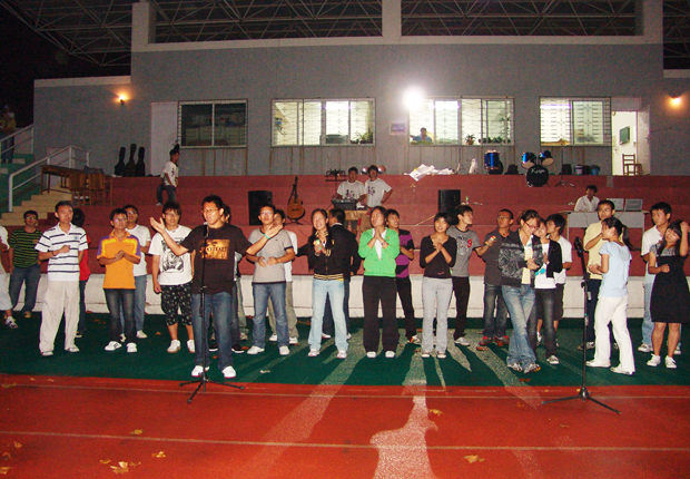 体育场举办了“自动化系2008级迎新晚会”,整场晚会精彩纷呈,欢歌笑语萦绕着整个体育场。