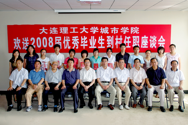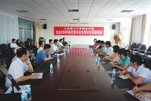 领导和7名被中共辽宁省委组织部选聘到村任职的2008届毕业生聚集一堂,畅谈国家和辽宁省委从大学生中选聘村官的重要意义,嘱托大学生要志存高远,脚踏实地,为社会主义新农村建设贡献自己的力量。院长唐志宏、党委书记郭玉铸、副院长兼党委副书记杨斌、院长助理李宪起等院领导出席了座谈会,各分院院长、有关部门负责人、部分辅导教师和即将到村任职的7名2008届优秀毕业生参加了会议。