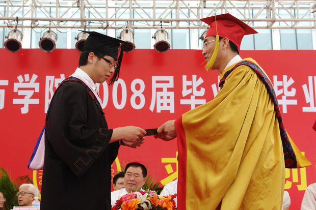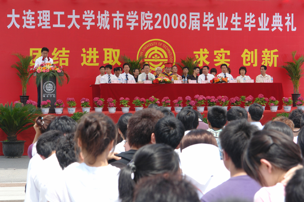 领导唐志宏、郭玉铸、杨斌、王铁成、马建军、沈海龙、李宪起和部分毕业生家长出席了毕业典礼,各院系和机关部门负责人、全体教师、2008届毕业生和部分在校生代表参加了毕业典礼。