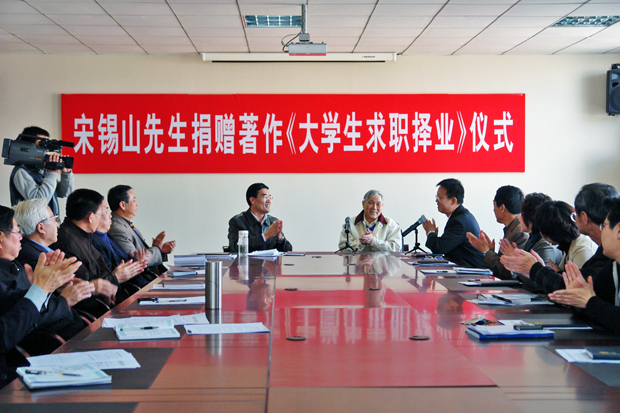 学生就业工作的义举表示衷心的感谢,并向宋锡山先生颁发了捐赠证书。