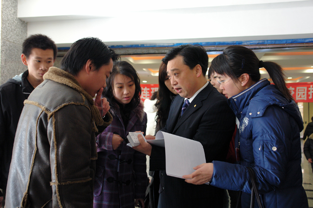 举办校园招聘会对同学们来说是一次难得的机遇,即便不能马上找到工作,亲身感受一下竞争的氛围,身临其境体验一下求职的艰难,对大家的成才、成长无疑是十分有利的。他建议同学们克服浮躁心理、自卑心理和盲目乐观心理,勇敢地走进职场,直面命运的挑战,靠自己的努力打拚出一片属于自己的天地。