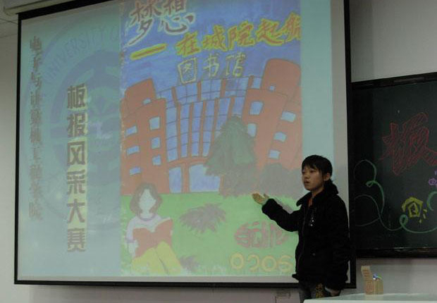 经过近两周的精心准备,电院07级36个班分别设计出了反映当代大学生生活和远大理想抱负的精美作品,并张贴在每个班级的自习室与同学们共勉。11月20日晚,由分院学生会和分院各系学生会30名多学生干部组成的评审团对这些作品进行了评审,经过初选,有二十幅作品进入了决赛。最后,软件工程(日语强化)0703班的作品获得一等奖、网络工程0703班的作品获得二等奖、自动化0701班的作品获得三等奖,软件工程(日语强化)0705班和自动化0705班的作品获得最具人气奖,还有10名同学获得最佳演说奖。