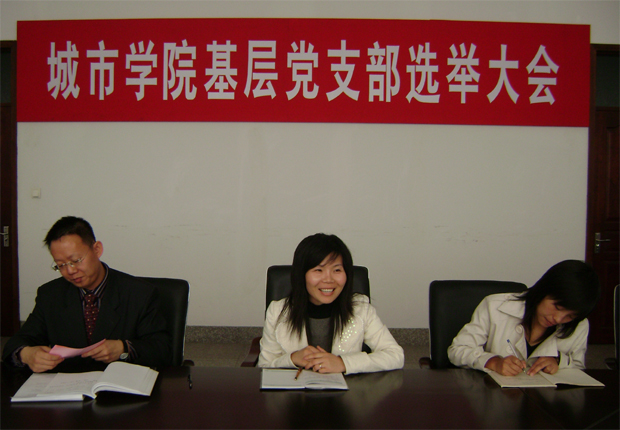 会议由沈海龙同志主持。通过无记名投票,工商管理系辅导室主任朱金玉以全票当选为学生党支部书记,董杨、郭姝海老师当选为党支部委员。
