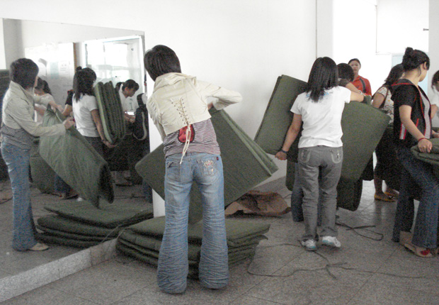 5月29日上午8:00,宿舍管理办公室将4号宿舍楼学生铺床用草垫全部更换为新的膨胶绵床垫。