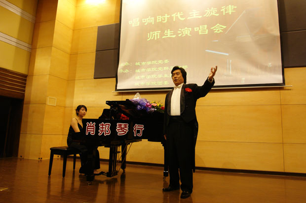图书馆报告厅隆重举行。王铁成副院长及各院系教师和同学们一起观看了演唱会。在一个半小时的时间里,赵岩老师用不同风格的表现形式为伟德
