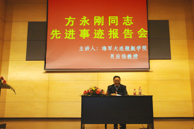 在图书馆报告厅隆重举行“方永刚先进报告会”,邀请海军大连舰艇伟德
