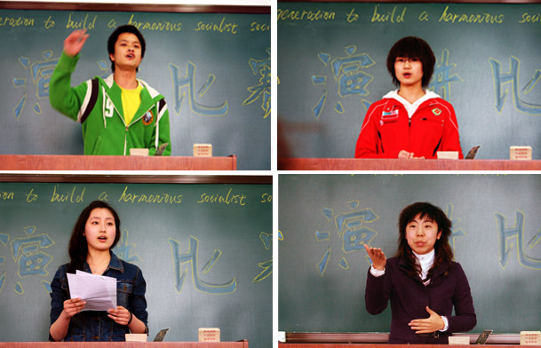 4月24日中午12:30,新闻与公共管理系“构建和谐社会与青年人的责任和使命”英语演讲比赛系内选拔赛在教学楼1109教室举行,共15名选手参加了比赛。外国语伟德