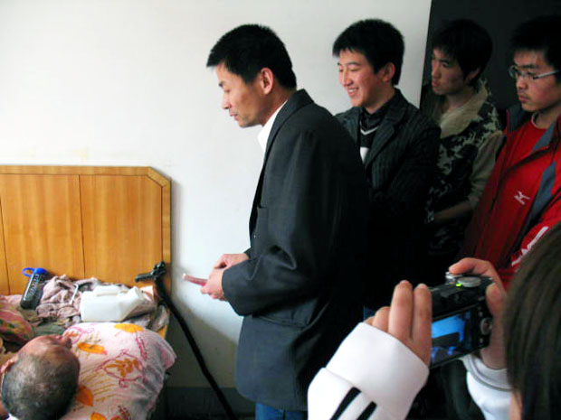 73岁的靳元财和他的智障老伴没儿没女,相依为命,只能靠政府救济过活。现在,他身患尿毒症卧床不起,视力也在急剧下降,使得原本贫困的家庭更是雪上加霜。当朱守先老师把1200元钱捐款交到老人手中的时候,老人激动的热泪盈眶不知道说什么才好。朱老师向靳元财老人献上了深深地祝福,祝愿老人家早日康复,并且许诺还会去看望他们。