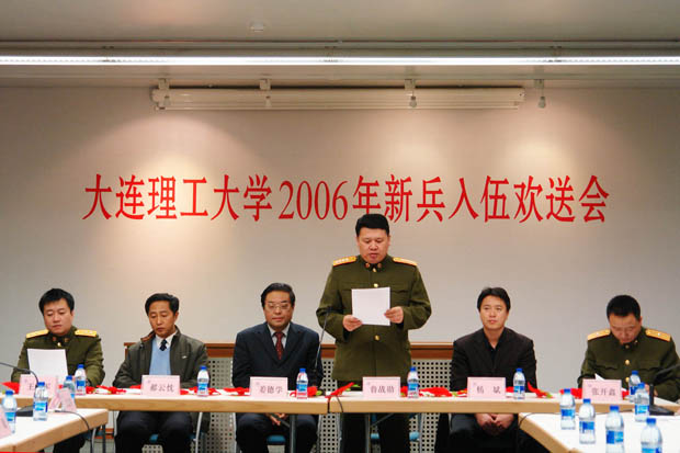2006年冬季新兵入伍名单,参会领导为参军入伍的同学佩戴红花并赠送纪念品。在学生代表发言结束后,姜德学副校长作了讲话,他希望参军入伍的同学尽快完成角色转换,适应军旅生活,实现各方面技能、专长、素质的全面提高,做一名优秀的士兵,为国防事业作贡献,为母校增光。