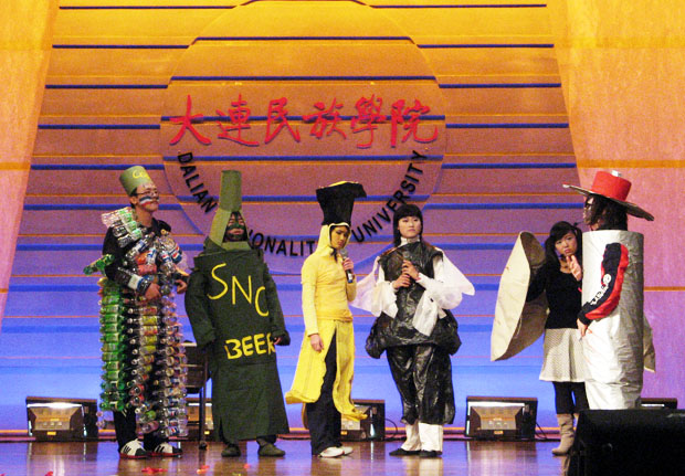 值得一提的是,英语戏剧表演项目组此次参加演出的16名演员中有13人是来自各个专业的大一学生,演出的全部道具及服装均由项目组成员自行设计并动手制作。充分体现了学生的创新精神和动手实践能力,并赢得了其他参赛院校的一致赞许。