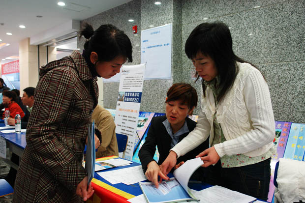 所有的03级学生。当笔者9:45进入展厅时,里面已经有不少同学提早开始找寻适合自己的职位了,10:00的时候,用人单位与应聘的学生开始面对面的交谈。同学在递上自己的简历之后,就自己选择的职位与用人单位进行沟通,用人单位也都一一详细介绍企业情况、所需岗位情况以及双方共同所关心的问题。47家用人单位中,计算机技术方面的招聘岗位所占比例比较大,市场营销、物流管理、文秘、英日语翻译等职位的需求量也较大,大部分职位都要求英语要过四级。从现场学生投放简历的人数来看,东芝、华信等几家大企业相对比较热门,同学们对这几家企业的关注也比较多。“企业待遇如何?”“是否会定期给员工提供培训?”……这些问题也是学生在招聘会上问得比较多的。“我们更看重企业的发展潜力。”其中一名应聘的学生跟笔者谈到。