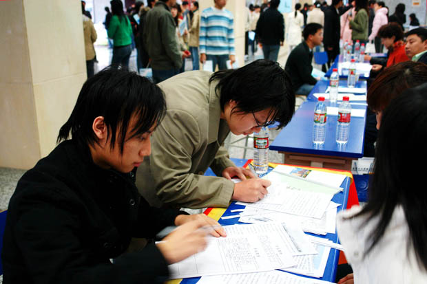 学生召开的珍奥情况说明会上的妙语连珠引起了在场学生的阵阵掌声。“大学生在刚开始工作的时候态度非常重要,要能从基层做起,并把它做到最好,你今后在企业中的反弹力也将会最强。”钟总还列举了日本前邮政大臣野田圣子大学刚毕业时刷厕所,而最后通过自己的不懈努力最终成为日本国政府邮政大臣的例子,向大家说明从最基层做起、从最困难的岗位做起的必要性和重要性。“大学课堂上所学的知识在以后的工作中并不一定能用得上,但是大学期间所积累的文化底蕴、培养的学习能力将会在实践中得到验证,并使你受用终生。”作为一名资深的营销经理,他也给有意于营销行业的同学提了几点建议:“首先,你必须喜欢营销,你只有喜欢它,你才能在营销的过程中源源不断地散发出激情。第二,你必须拥有很强的团队合作精神,一个人的能力再强,但还是有限的。第三,营销人员经常跟顾客面对面接触,所以你必须要用你的真诚打动顾客。”笔者跟现场一名应聘营销职位的计算机网络专业的学生聊了几句。从谈话中可以看出他对于就业的态度还是比较理性的。“我学得虽然是网络专业,但是这几年网络专业竞争很厉害,营销方面我自己也一直比较喜欢,应聘营销职位也是考虑到给自己的就业多一份机会。”专业对口当然最好,但是能跨专业就业也是不错的选择。