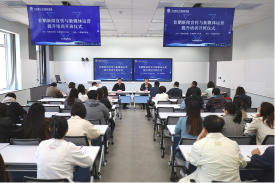 在管理楼308智慧教室举行首期新闻宣传与新媒体运营提升培训班。党委宣传部部长暴丰主持开班仪式,党委教师工作部主任张未萌作开班动员讲话。