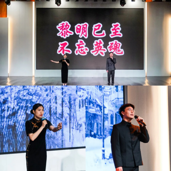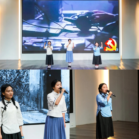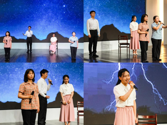 沉浸式情景党课以四个感人至深的红色故事为核心,通过诗朗诵、情景表演等形式生动呈现了一代又一代中华儿女为民族独立、国家富强不懈奋斗的伟大历程。