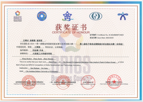 在第二届电子商务运营数据分析赛项全国总决赛中荣获佳绩