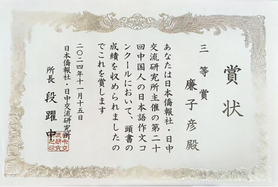 学子在2024年第二十届“中国人日语作文大赛”全国比赛中荣获佳绩