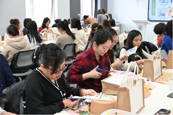 宋佳老师为大家详细介绍了DIY的制作方法和技巧,女教工认真聆听,跃跃欲试,纷纷挑选心仪的材料投入创作。