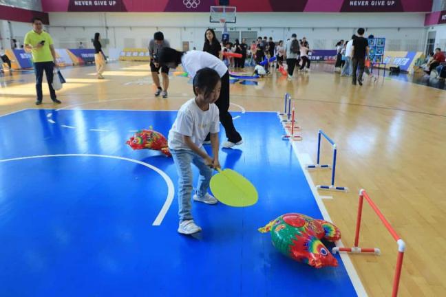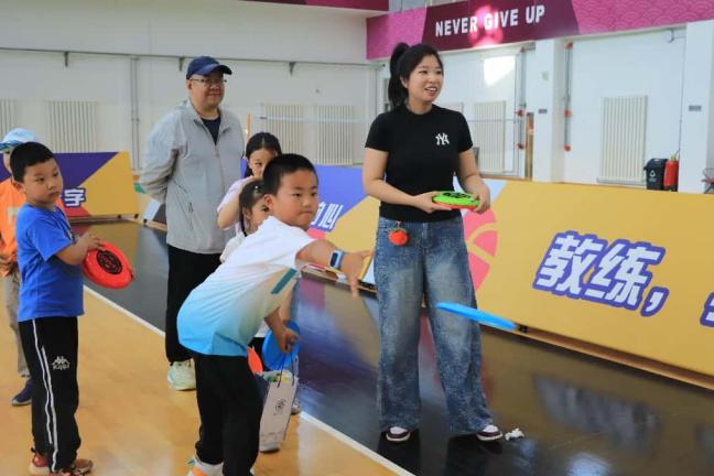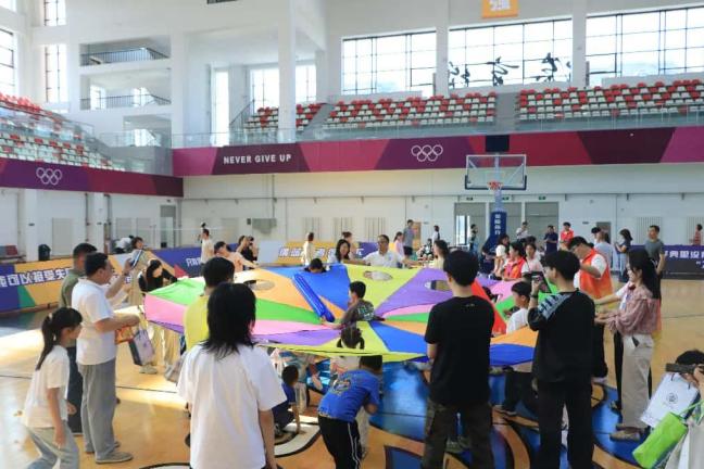 种植余温未散,体育馆的欢快音乐已拉开亲子游戏帷幕。“幸运套圈”“赶鸡上架”“数字飞盘”等创意项目让孩子们全情投入。在与伙伴的互动中,他们悄然领悟合作与竞争的意义,笑声此起彼伏。