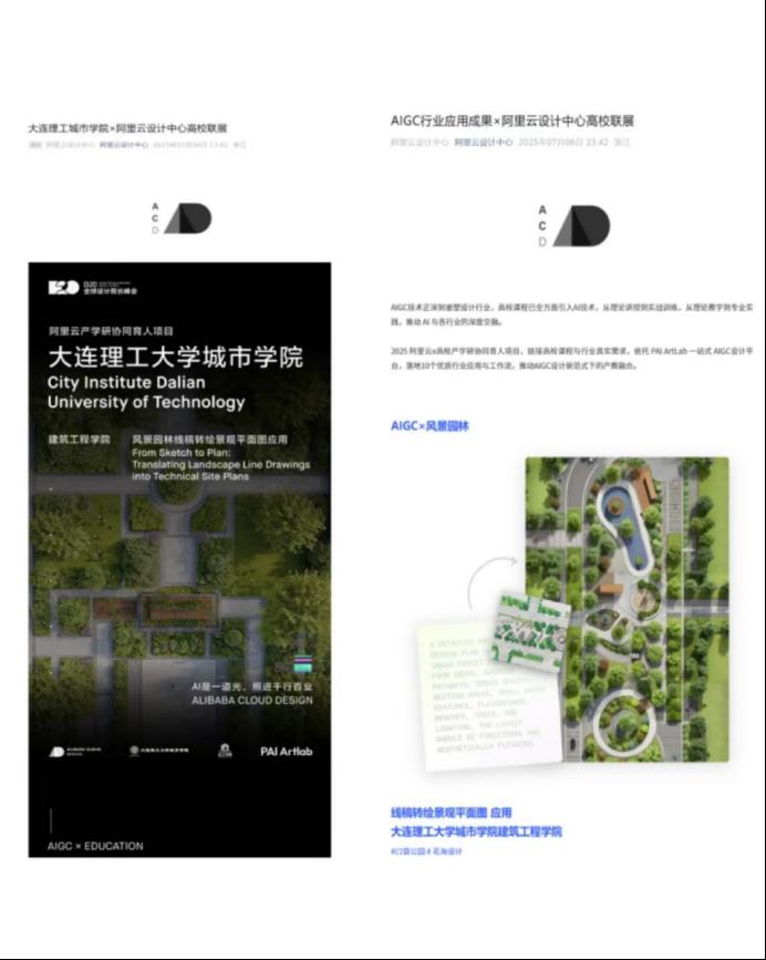 的两项获奖项目从阿里云过去一年合作的近百所高校中脱颖而出。成为精选的12个高校产学研协同育人项目课程成果之一,以及10个AIGC标杆行业应用成果案例之一,项目成果在“D20全球设计院长峰会”现场、阿里云官网及阿里云官方公众号集中展示,并在PAI Artlab平台应用中上架推广。